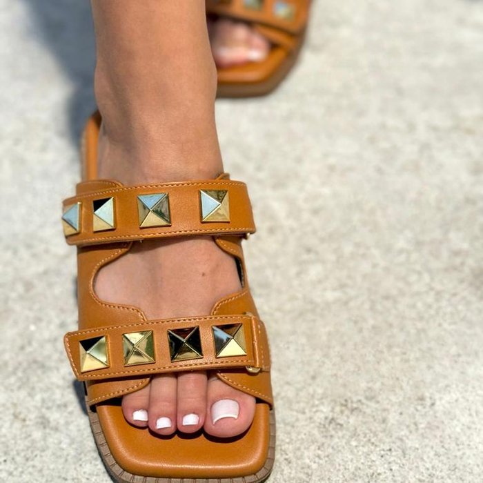 Desperte o seu verão com o toque natural da nossa Birken Chiara com detalhes em Pirâmides Douradas e fecho de velcro, que pode ser regulado de acordo com o seu pé.