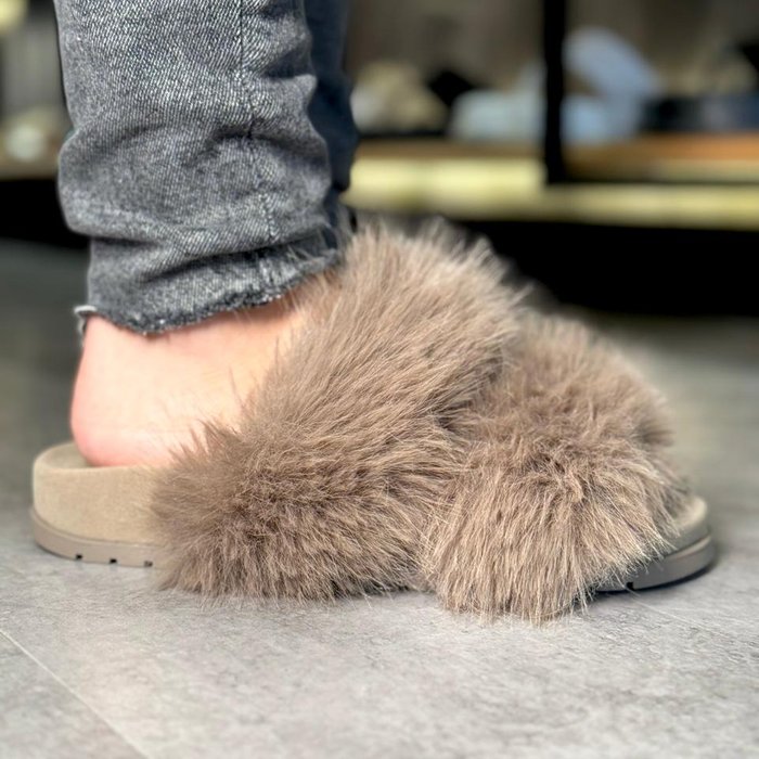 Confeccionado com duas tiras largas inteiramente revestidas em pelo sintético longo e macio, o modelo cria um efeito de volume que rouba a cena com charme e irreverência.