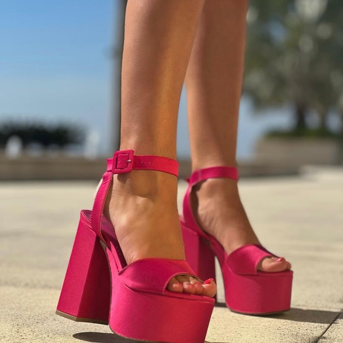 A sandália plataforma Poli, toda em cetim rosa é a combinação perfeita entre sofisticação e modernidade.