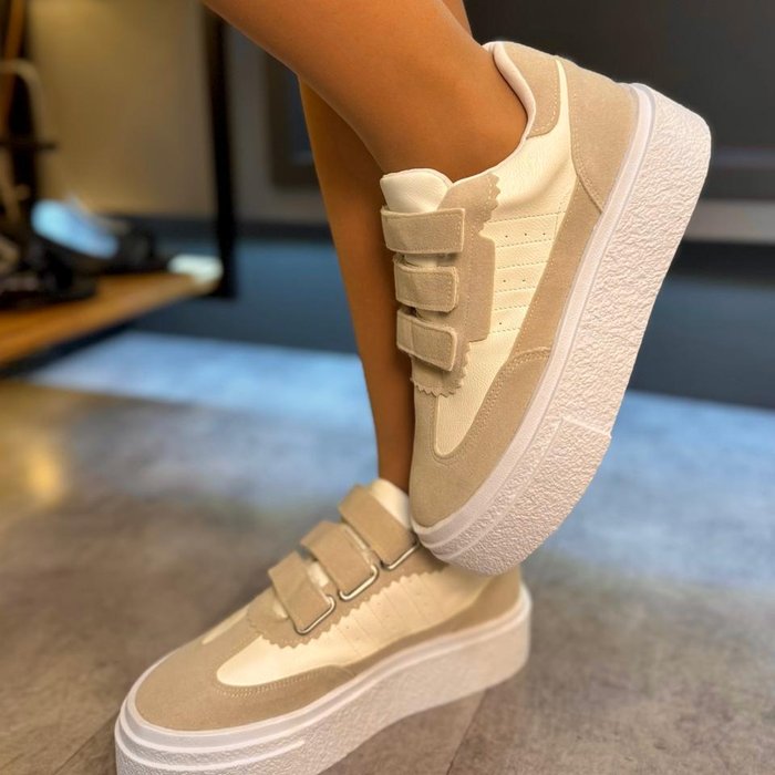 Tênis Rita estilo casual, com fechamento em velcro que facilita o ajuste e proporciona conforto ao calçar.